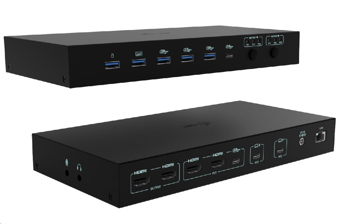 i-tec USB-C KVM Docking station for 3 Hosts, Dual Display, Power Delivery 1x 92W/2x 65W