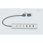 Rozbočovač nevyžaduje instalaci ovladačů, stačí jej připojit kabelem USB-C nebo USB-A a můžete jej začít ihned používat. Rozbočovač má vestavěnou přepěťovou ochranu počítače pro případ zkratu na periferiích. Díky kompaktním rozměrům a nízké hmotnosti jej můžete vždy nosit v tašce – kovový povrch chrání rozbočovač před poškozením a poškrábáním.