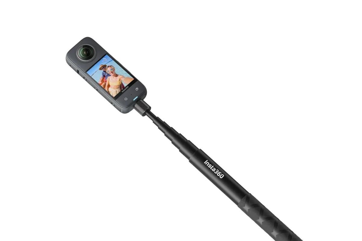 Selfie tyč pro akční kamery Insta360. Nastavitelná délka 23,3cm až 114 cm. Materiál: hliník. Způsob uchycení: 1/4" šroub. Tyč je automaticky odstraněna z pořízených záběrů..