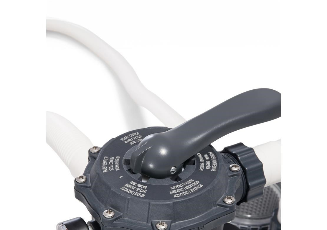 Filtrace je vhodná pro bazény s kapacitou do 56 m3. Další výhodou je 24hodinový časovač. Toto ekonomické a ekologické čerpadlo nevyžaduje prakticky žádnou údržbu, kromě výměny písku každých cca 5 let. Integrovaný solinátor lze vypnout a používat pouze pískovou filtraci.
