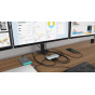 Malá kovová USB-C dokovací stanice, která dokáže připojit až tři externí monitory*. Jednoduše připojte váš notebook či tablet (instalace ovladačů není nutná) a využijte rychlého datového USB, připojení k internetu prostřednictvím LAN portu, spolu s možností připojit vaše sluchátka a mikrofon. Samozřejmostí je podpora napájení vašeho notebooku, a to až do 100 W, což znamená, že budete schopni nabít všechny notebooky a tablety, které nabíjení prostřednictvím USB-C (USB-C Power Delivery) podporují.