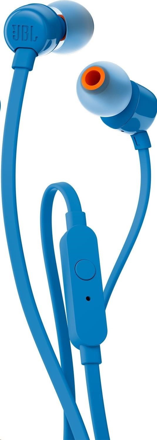 JBL T110 Black špuntová sluchátka, 3,5 mm jack, mikrofon, modrá