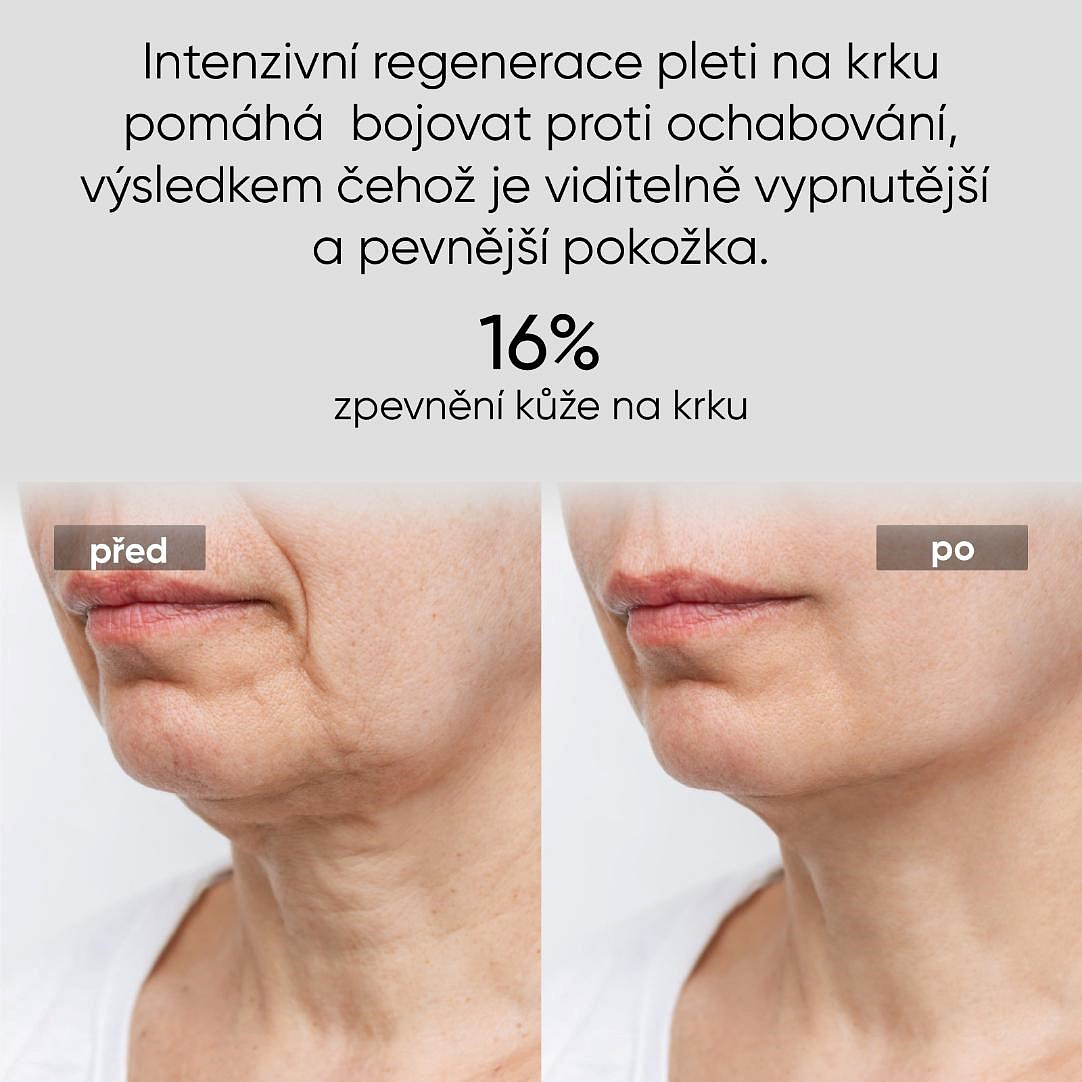 Tato unikátní maska byla navržena tak, aby dokonale pokryla nejen krk, ale i celý hrudník a horní část zad. Klíčový rozdíl oproti běžným maskám spočívá v cíleném, konturovaném designu, díky kterému těsně obepíná a ošetřuje oblast krku, dekoltu a horní části zad. Využívá klinicky ověřenou sílu vysoce čistého červeného světla o vlnové délce 660nm, které je standardem v profesionální dermatologické péči. Světlo proniká hluboko do pokožky, kde stimuluje produkci kolagenu, zrychluje regeneraci buněk a pomáhá napravovat poškození způsobené UV zářením. Výsledkem je viditelně pevnější, hladší a barevně sjednocená pokožka.