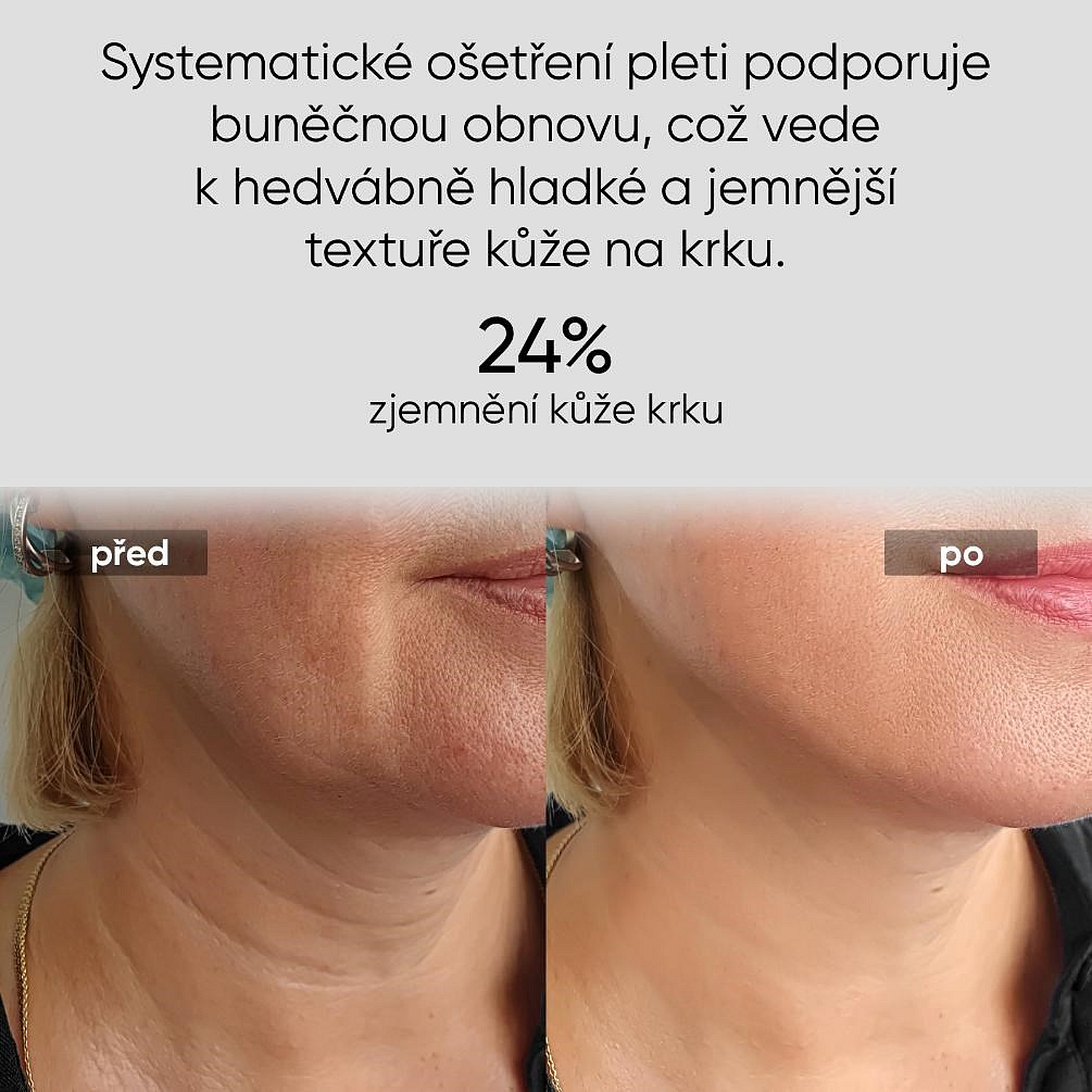 • Viditelné omlazení a zpevnění: Podporuje syntézu kolagenu, vyhlazuje jemné vrásky a navrací pokožce pevnost a pružnost.