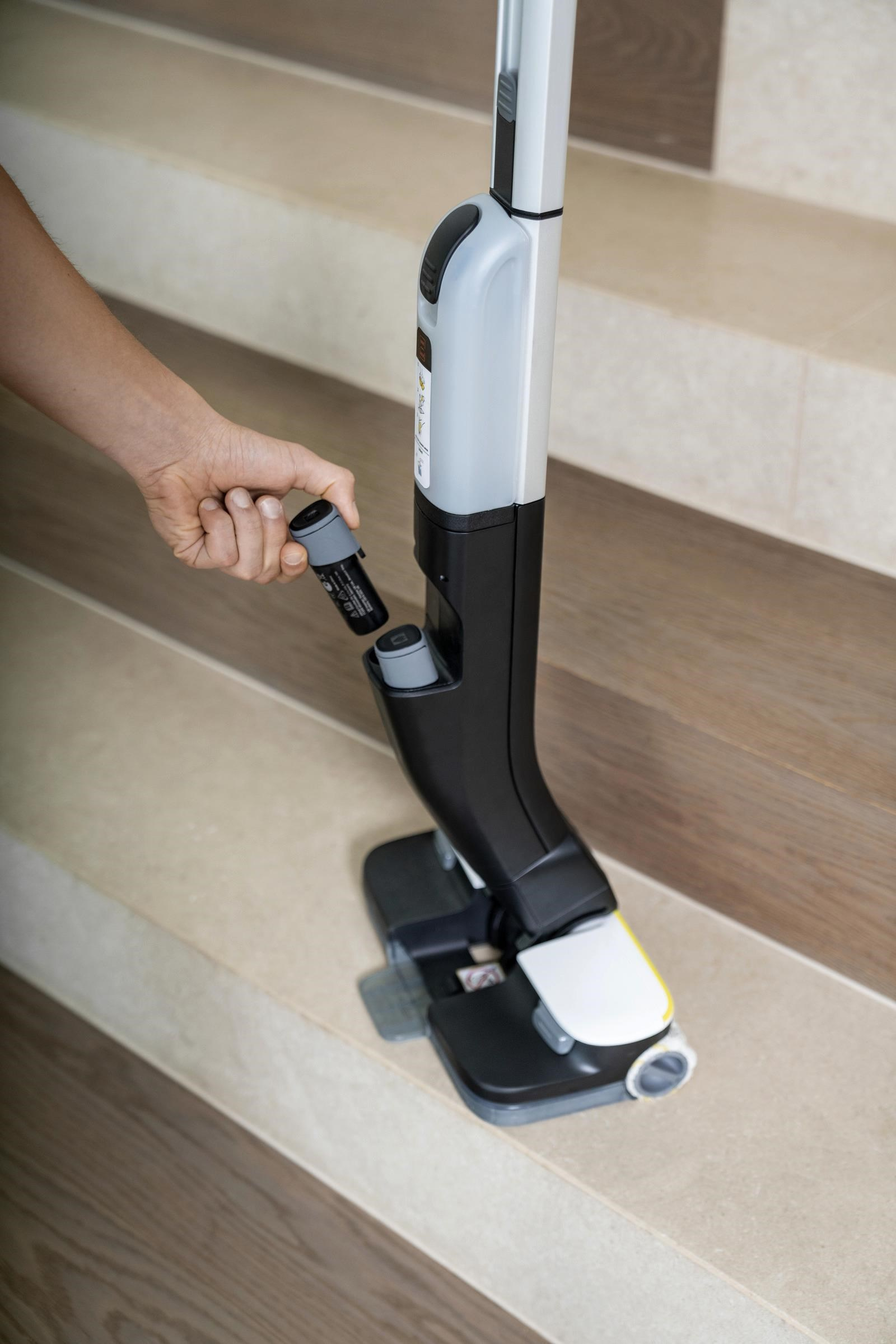 Precizní čištění: FC 4-4 pomocí dvou režimů čištění přesně a rychle odstraňuje suché i mokré každodenní nečistoty. Součástí jsou vyměnitelné baterie a rychlonabíječka Duo..