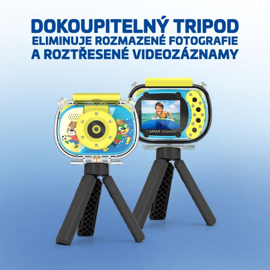 Děti by neměly sedět v koutě. Jejich akčnost podpoří dětská akční kamera LAMAX ActionKid1, na kterou zaznamenají všechna svoje dobrodružství v parádní kvalitě. Pořízená videa mají rozlišení 1080p a jelikož jde kameru použít i k focení, získá malý tvůrce 8 Mpx fotky. Zážitky z prázdnin, sportovních a jiných aktivit můžou ozvláštnit pomocí zabudovaných efektů a filtrů. Hlavně starší děti ocení i možnost pořídit díky vodotěsnému pouzdru podvodní záběry až v hloubce 10 m. Kamera disponuje výklopnou čočkou, kterou lze manuálně přepnout na selfie kameru. Pro ukrácení dlouhé chvíle dětem poslouží čtyři uložené hry. Veselý design kamery si každý malý tvůrce může ještě ozvláštnit podle svého vkusu přiloženými samolepkami se zvířátky. Kamera se dá pomocí závitu bez problémů připevnit k různým držákům.