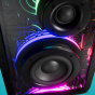 Bezdrátový přenosný party reproduktor, 4 nastavitelné Cyber LED efekty, dvoupásmové reproduktory, výkon až 50 W, technologie BeatBass, Bluetooth 5.3, automatické párování, baterie na až 20 h, USB-C, IPX6, variabilita formátů a připojení..