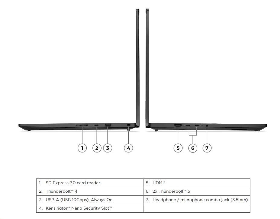 Typ zařízení:Notebook; Použití:Kancelářský; Podpora AI; Operační systém:Windows 11 Pro; Řada procesorů:Intel Core Ultra 7; Model grafické karty:NVIDIA RTX PRO 1000; Velikost paměti RAM (GB):32; Rozlišení displeje:1920x1200; Formát obrazovky:16:10; Typ disku:SSD; SSD Kapacita (GB):1000; Rozhraní:USB 3.2 Gen 2, SD karta, HDMI, 3.5mm Jack, Thunderbolt.