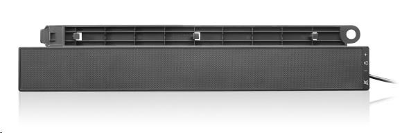 Lenovo USB Soundbar vám umožní přidat stereo zvuk do vašeho kompatibilního monitoru Lenovo ThinkVision, aniž byste museli obětovat cenné místo na stole. Stylový Lenovo USB Soundbar je vynikající volbou pro přidání stereo zvuku do webového vysílání, multimediálních prezentací a dalších aplikací, které vyžadují zvuk.