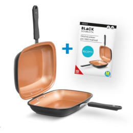Livington Black Doubletta je inovativním vylepšením milion krát prodaného kuchyňského hitu Doubletta. V čem spočívá tajemství nové Livington Black Doubletty?Čtverečný tvar Vám zajistí dostatek místa při vaření a umožní Vám přípravu dvou pokrmů najednou. Livington Black Doubletta má extrémně odolné dno, které ukládá teplo na obou stranách, pro ještě lepší výsledky. Díky propracované cirkulaci se teplo uvnitř pánve rozloží kolem Vašeho jídla rovnoměrně, například při šetrném, pomalém dušení, či vaření v páře, nebo také při grilování. Povrch pánve je potažen nepřilnavou vrstvou, díky níž se nic nepřilepí, ani nepřipálí. Flexibilní, silikonové těsnění a ergonomická ručka s geniálním magnetickým uzávěrem drží pánev pevně uzavřenou. Tím je zaručeno perfektní vařní prostředí. Nadbytečná pára se vypaří otvory k tomu určenými. Jinak, než u běžných varých systémech, můžete Livington Black Doublettu kdykoliv během přípravy jídel otevřít: například když chcete jídlo dochutit kořením, podlít vodou, nebo prostě jenom ochutnat! Takto budete vařit mnohem šetrněji, pod nišším tlakem. Vaše jídla budou chutnat intenzivněji a na jejich úžasnou chuť určitě nezapomenete! A navzdory všemu vaříte pomocí Livington Black Doubletta mnohem rychleji, než s kteroukoliv jinou pánví.