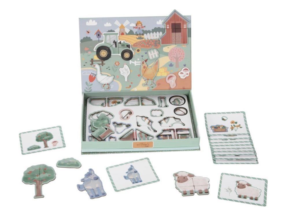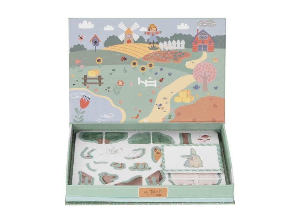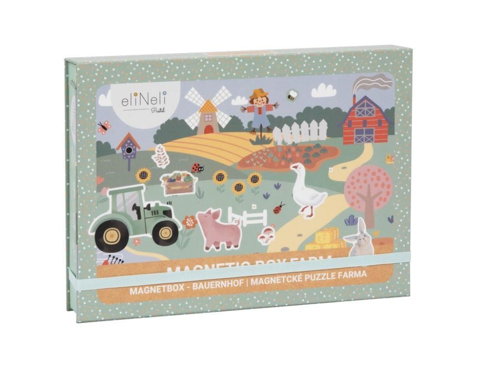 Magnetická hra 2v1 zavede děti na farmu se zvířátky, která mohou potkat ve svém okolí, v jejich reálné (skutečné) podobě. Na magnetickém obrázku s venkovskou krajinou si děti vytvoří vlastní farmu nebo si jen pohrají s jednoduchým puzzle. Z jednotlivých dílků puzzle děti poskládají traktor, zvířátka nebo dle přiložených kartiček celé obrázky..