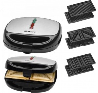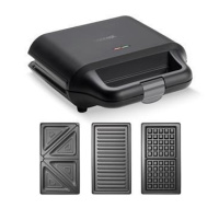 Lauben Sandwich Maker 3in1 900WWToastovač, 900W, 3 sady vyměnitelných plotýnek s nepřilnavým povrchem, prémiový design s dřevěným dekorem, vertikální skladování, LED kontrolka, bezpečnostní západka.