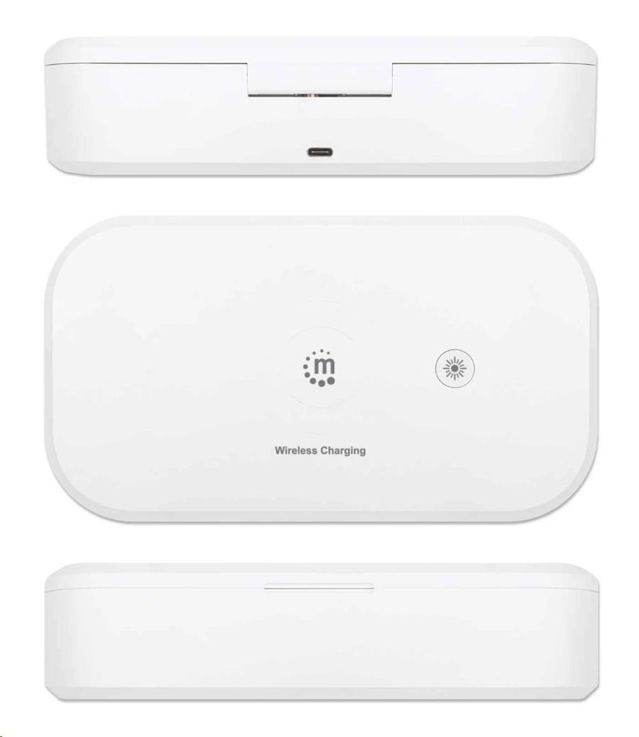 MANHATTAN dezinfekční pouzdro UV-C s bezdrátovým nabíjením, 10W bezdrátová nabíjecí podložka, bílá