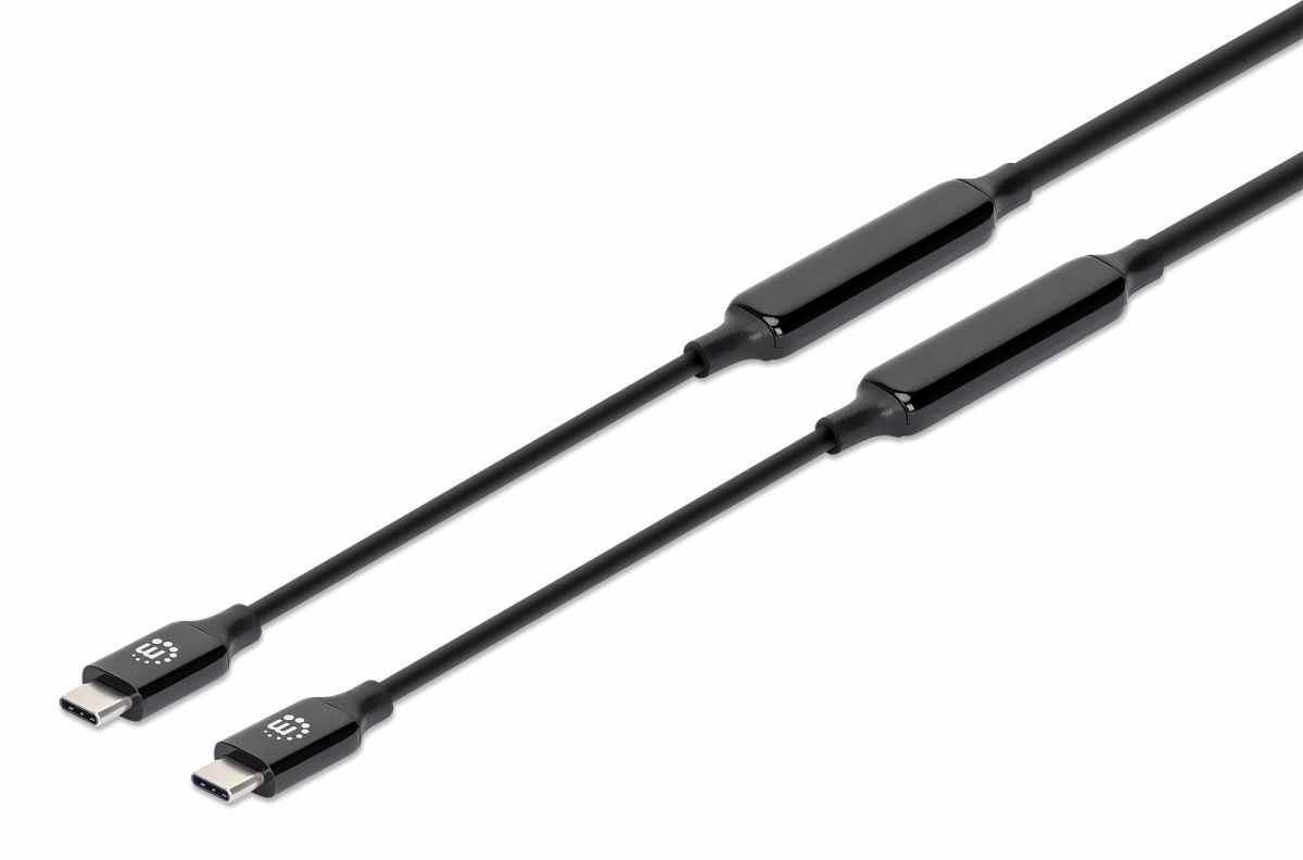 MANHATTAN Kabel USB-C Male to Male, USB 3.2 Gen 2 Type-C Active Device Cable, 5m, pozlacené koncovky, černá