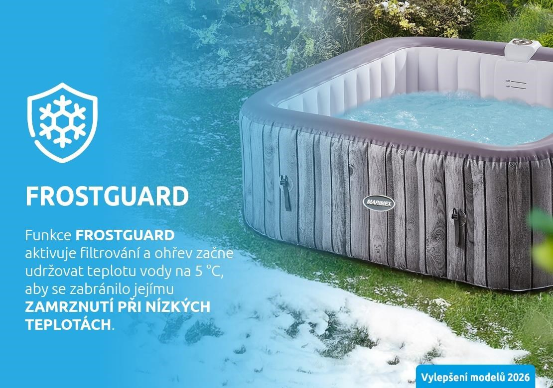 Vířivý bazén Aquamar P6002 disponuje funkcí Frostguard, díky které ohřev začne udržovat teplotu vody na 5 °C, aby se zabránilo jejímu zmrznutí při nízkých teplotách.