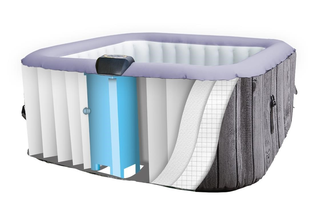 Laminovaná tkanina s termoizolační a UV ochrannou vrstvou zaručuje vynikající výkon vířivky. Je to dokonalá kombinace kvality, pevnosti a stability. Kartušový filtr pomáhá odstranit nečistoty, prach a další špínu. Balení obsahuje snímatelný potah, který zachycuje vlasy a drobná smítka.