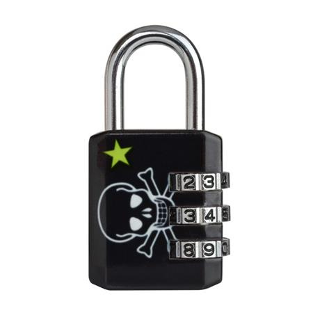 Visací kombinační zámek 1509EURDSKULL pro všeobecnou ochranu. Zinkové tělo zámku je o šířce 30mm. Ocelový třmen o průměru 5mm je dlouhý 22mm a je vyroben z pochromované oceli a nabízí odolnost proti řezání a řezání. Vlastní nastavení 3-místné kombinace zámku nabízí pohodlí bez klíče.