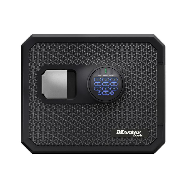Ohnivzdorný a voděodolný bezpečnostní trezor Master Lock velikosti L kombinuje to nejlepší ze zkušeností společnosti Master Lock v oblasti zabezpečení s odbornými znalostmi společnosti Sentry Safe v oblasti ochrany proti požáru a povodním. Chrání nejcennější předměty - šperky, peníze, elektroniku, papírové dokumenty (formát A4), média a další rodinné památky - před krádeží, požárem a povodněmi. Díky 3 velkým automatickým ocelovým závorám (o 60 % širším než u trezoru verage), pantům odolným proti roztržení a elektronickému motorizovanému zámku je vysoce odolný proti napadení. Jeho speciální patentovaná konstrukce zaručuje 1hodinovou ochranu proti požáru a 24hodinovou ochranu proti zaplavení.