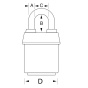 - Visací zámek o šířce 54 mm z vrstvené oceli.