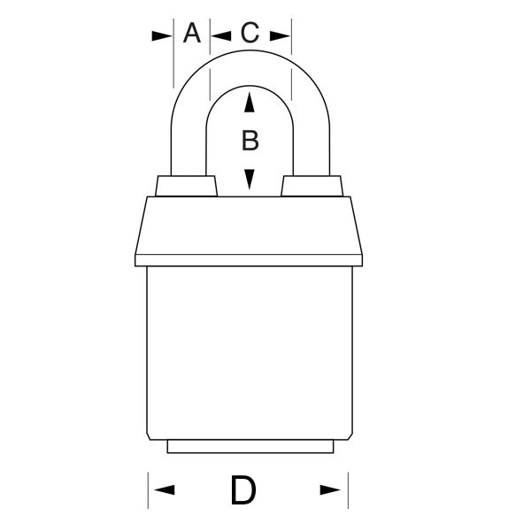 - Visací zámek o šířce 54 mm z vrstvené oceli.