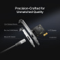 - Kompatibilní s více rychlostmi — Automaticky vyjednává mezi vyššími a nižšími rychlostmi připojení, aby zajistil plynulý přenos dat pro všechny úlohy náročné na šířku pásma.
