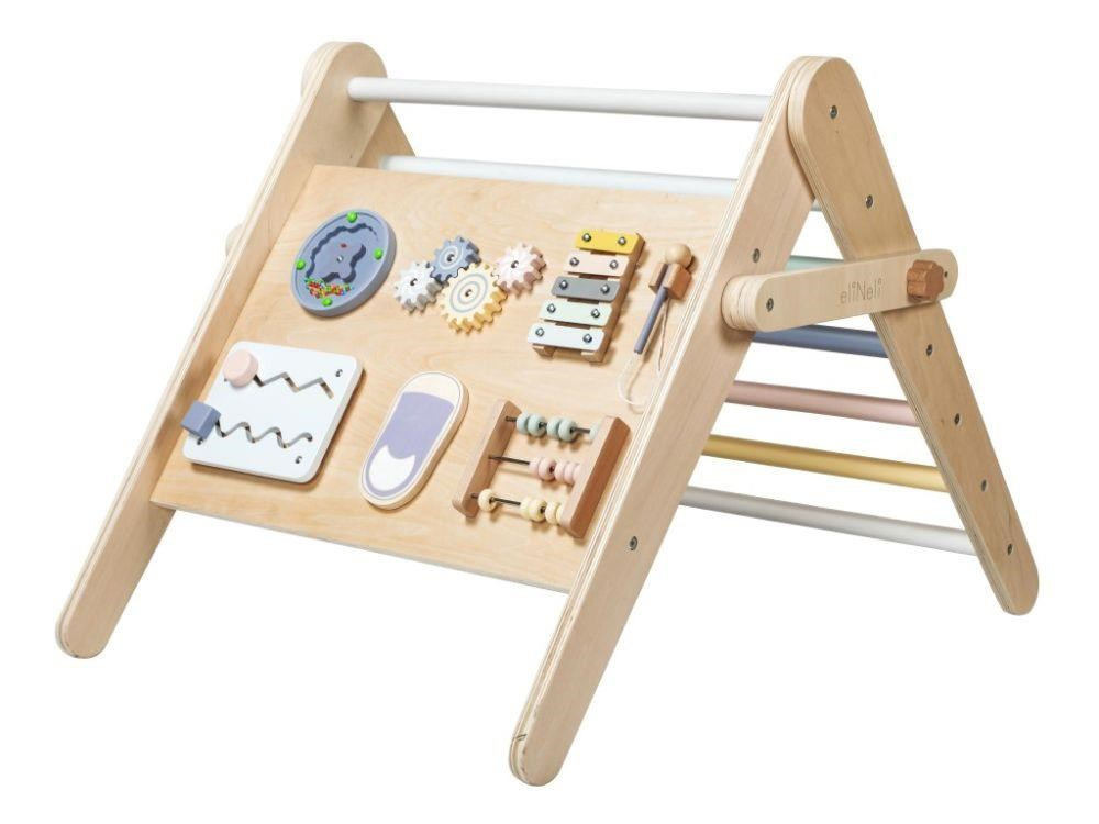 Montessori rostoucí Piklerové trojúhelník 3v1 s activity boardem a prknem 2v1 - pastel - 2. jakost