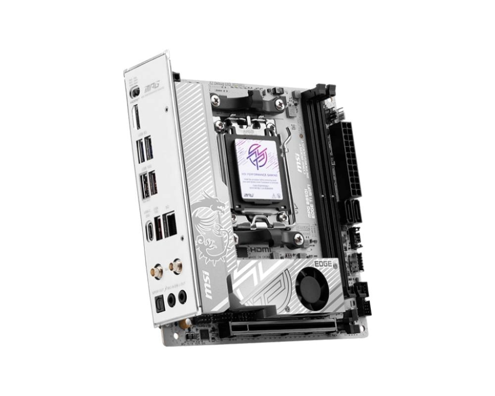 MPG B850I EDGE TI WIFI is covered with a silver-white color scheme for white PC build lovers to show off different identity. It is also powerful because of its true Wi-Fi 7 solution, 5G LAN, and the latest PCIe 5.0 compatibility, Supplemental PCIe Power, and this is the best white theme B850 ITX motherboard for AMD Ryzen™ 9000 series processors.