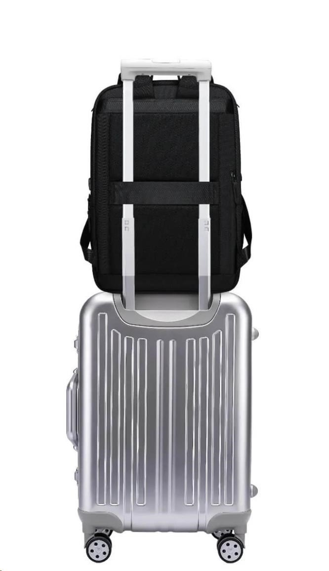 Volná záda se při cestování mohou hodit. Batoh lze díky držáku připevnit ke kufru.