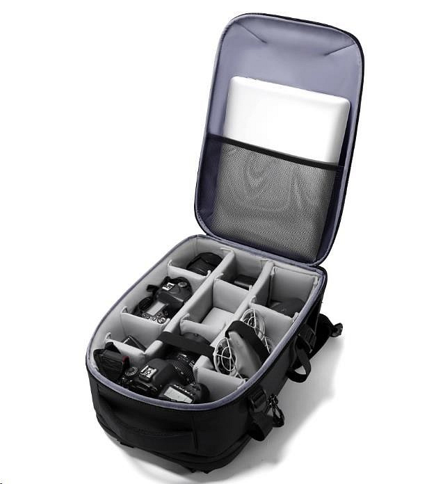 Batoh má objem 22 l a je rozdělen do dvou velkých kapes, bezpečnostní kapsy a kapsy na láhev. Hlavní kapsa na foto vybavení obsahuje odnímatelný organizér. Velmi praktický je držák na stativ, který najdete na pravé boční straně batohu. Zadní velká kapsa nabídne polstrovanou přihrádku na notebook do 17,3" a tablet do 11".