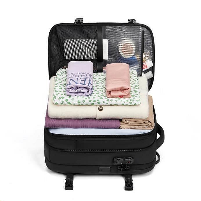 Konec poplatkům za zavazadla! Představujeme vám MYBALO Vacuo FLY, náš cestovní batoh s kompresní funkcí, který můžete vyžít jako bezplatné osobní zavazadlo (underseat bag) také u nízkonákladových dopravců. Pokud chcete cestovat pouze s jedním zavazadlem, Vacuo FLY je pro vás skvělým řešením. Integrovaná kompresní kapsa vám umožní vzít si s sebou až dvojnásobek věcí při dodržení nařízených rozměrů bezplatného zavazadla.