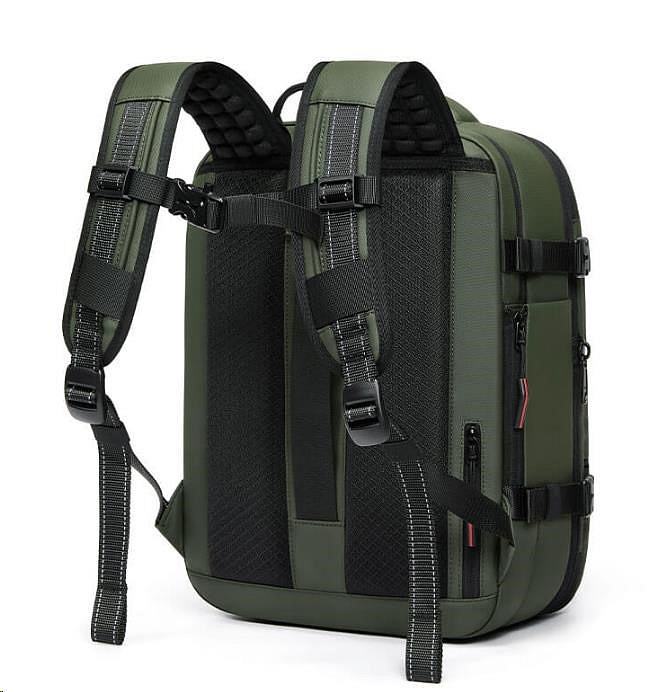 Dalšími skvělými vychytávkami tohoto cestovního parťáka jsou rozšiřitelnost, izolační nepropustná kapsa, samostatná přihrádka na notebook a mnohé další. Skvělou organizaci věcí umožňuje množství praktických vnitřních kapes, skrytá kapsa na cennosti a vnější kapsa na láhev. Klid na cestách vám zajistí bezpečnostní TSA zámek na kód, který ochrání všechny vaše uložené věci a je velmi praktický v případě kontrol na letištích. Pro co nejefektivnější odsátí vzduchu můžete využít naši kompresní pumpu, kterou nabízíme jako příslušenství k batohu.