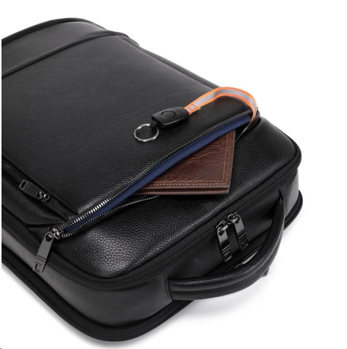 Samostatná přihrádka na laptop z měkkého semiše zaručuje bezpečné a praktické uložení vašeho elektronického zařízení.