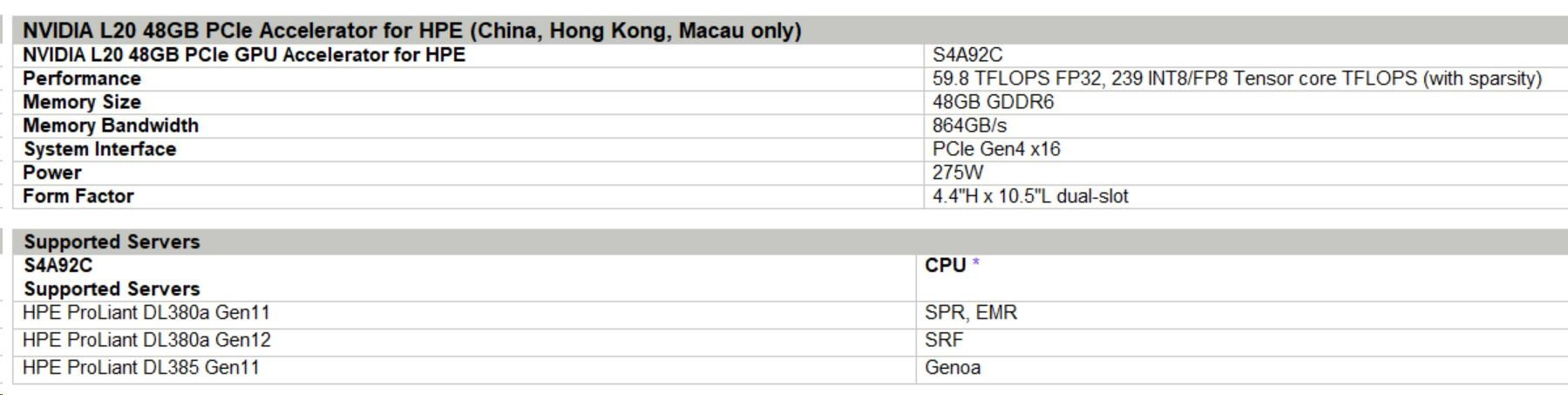 NVIDIA L20 48GB PCIe Accelerator for HPE (China, Hong Kong, Macau only)