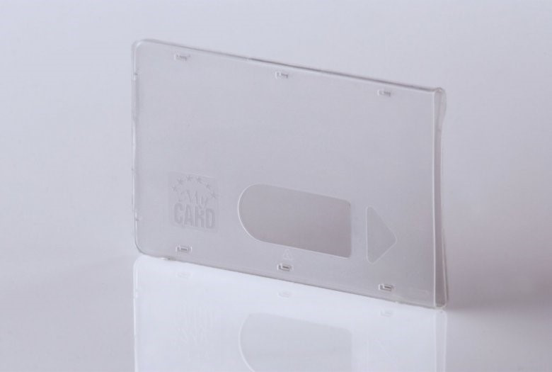 Tuhý plastový obal pro magnetické karty 54×86 mm – vodorovná s postranním výřezem, provedení z průhledného polomatného polyprophylenu. Otvor a postranní výřez pro snadné vysunutí karty. Obaly chrání karty nejen proti mechanickému poškození, ale i vlivům UV záření, antistatické elektřiny a v omezené míře i magnetismu..