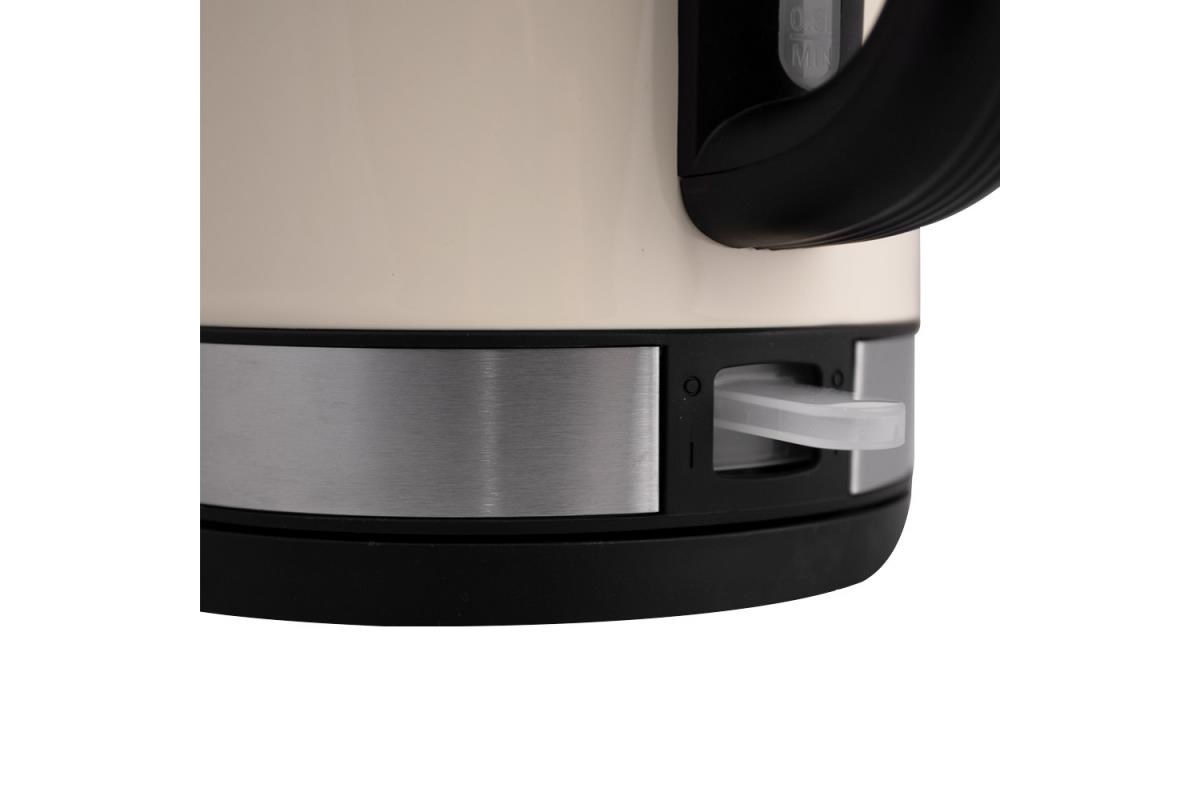 Automatická varná konvice, krémová barva, Objem vody: max. 1,7 l, Napájení: 220 - 240V ~ 50/60 Hz, 1 850 - 2 200W, VDE zástrčka, Varná nádoba na odnímatelném 360 ° otočném podstavci, Topné těleso překryté deskou z ušlechtilé oceli, automatické vypnutí, Ochrana před ohřevem bez vody, ukazatel napájení, S indikátorem hladiny vody.