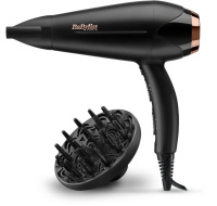 BaByliss D570DE fén na vlasy, 2200 W, ionizace, 2 rychlosti, 3 teploty, difuzér, tvarovací kartáč, černáFén na vlasy s ionizátorem, s difuzérem, příkon 2200 W, ionizace a studený vzduch, počet rychlostí 2, počet teplot 3, difuzér, délka přívodního kabelu 1,95 m, barva černá.