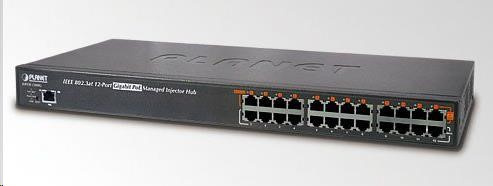 PoE (power over ethernet) Injektor HUB pro napájení zařízení po ethernetu podle IEEE 802.3af a vícepříkonových zařízení IEEE 802.3at. Je navržen pro napájení zařízení jako jsou PTZ nebo Speedome IP kamery, WiFi přístupové body nebo VoIP telefony. K dispozici je celkem 12 portů s celkovým výstupním výkonem 340W, injektor je průchozí, napájení přidružuje na již stávájící ethernet Cat5/5e/6 vedení. Pokud koncové zařízení nepodporuje IEEE802.3at budete potřebovat POE-161S, které pro danou kabelovou trasu napájení pro vzdálené zařízení poskytne. Vlastnosti: - 12 portů/injektory 802.3at, vkládané do trasy (in-line mid-span), (12 portů RJ-45 data-in, 12 portů data+power out) - IEEE 802.3, 802.3u, 802.3ab 1000Base-T - IEEE 802.3af, IEEE 802.3at, 52V DC PoE(power over ethernet) - každý port plně napájen - maximální úhrný odběr připojených PoE zařízení 340W - automatická detekce odběru na každém portu - ochrana portů před zkratem a vzájemnou interferencí - WEB správa zařízení - napájení zařízení: 230V AC, příkon až 370W - aktivní chlazení: 2 ventilátory - rozměry: 440 x 300 x 44 mm, 1U/19" - hmotnost: 4,27kg.