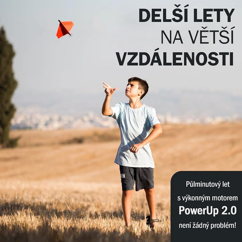 S modelem POWERUP 2.0 se obejdete bez pokročilých technických znalostí a funkční model motorizované vlaštovky zvládnou bez problémů složit i menší školou povinné děti. V balení naleznete předtištěné šablony, nicméně bez obav můžete využít i své vlastní designy. Jakmile máte vlaštovku hotovou, jednoduše na ni připevníte karbonovou osu s motorem a přiloženým nabíjecím boxem oživíte integrovaný superkondenzátor. Celá akce nabití zabere rovných 20 sekund, po kterých stačí vlaštovku s roztočenou vrtulí vypustit do prostoru a užívat si pohled na plynulý volný let. POZOR: Nikdy nenabíjejte déle než 20 sekund. Na většinu letů vám bude stačit 10s nabíjení.