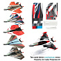 Balíček dvanácti precizních archů přináší agresivní vzhled a 6 odlišných aerodynamických tvarů, se kterými posunete manévrovatelnost svého letadla o úroveň výš. Ty nejpovedenější kousky si po letu hrdě vystavíte na poličku díky přiloženému designovému stojánku.