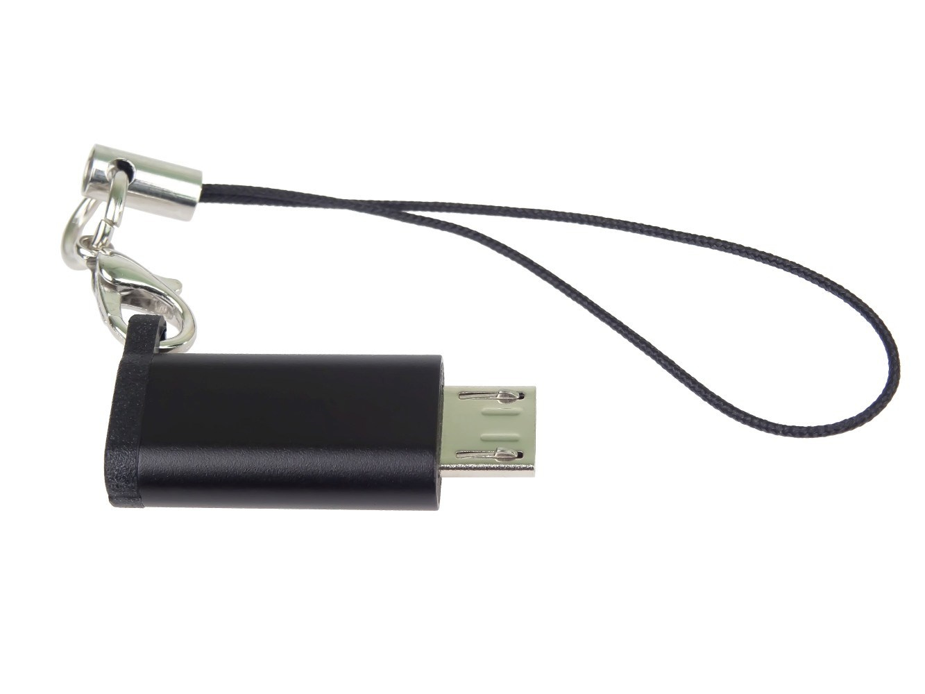PremiumCord Adaptér USB-C konektor female - USB 2.0 Micro-B/male, černý s očkem na zavěšení