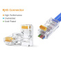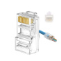 PremiumCord modulární RJ45 konektor (8P8C) pro kabely kategorie Cat6 je navržen pro čisté a spolehlivé zakončení síťových kabelů. Tento průchozí konektor usnadňuje krimpování: vodiče procházejí skrz konektor, takže lze snadno ověřit jejich pořadí a zajistit správný kontakt. Transparentní tělo umožňuje vizuální kontrolu zapojení vodičů, což minimalizuje chyby při instalaci.