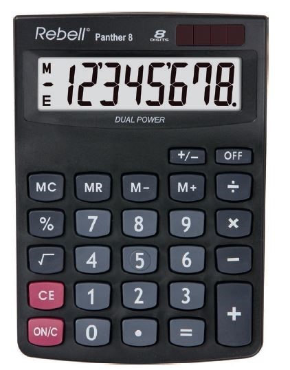 Charakteristika Displej 8 cifer Klávesy plastové Napájení solární & bateriové Váha (g) 94 Rozměry (mm) 143 x 102 x 29 Funkce Klávesy %, +/–, ?, OFF 4 paměťové klávesy.