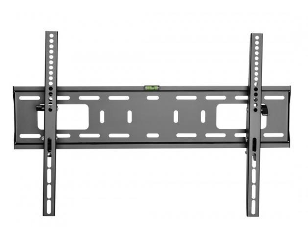 Nástěnný ocelový držák na Plasma a LCD TV s uhlopříčkou 37"- 70" (94-178cm) a hmotností maximálně 50kg. Konzole na zavěšení TV s vodováhou, vertikálně výklopný +5°/-10°, vzdálenost od stěny 56mm, materiál ocel, cenově výhodné, barva černá. Uchycení VESA: 200x200, 400x200, 300x300, 400x400, 600x400..