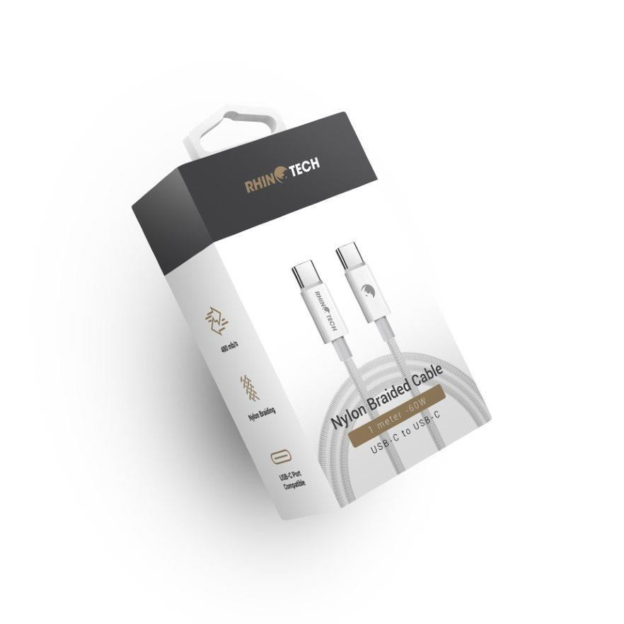 RhinoTech kabel s nylonovým opletem USB-C na USB-C 60W 1M bílá