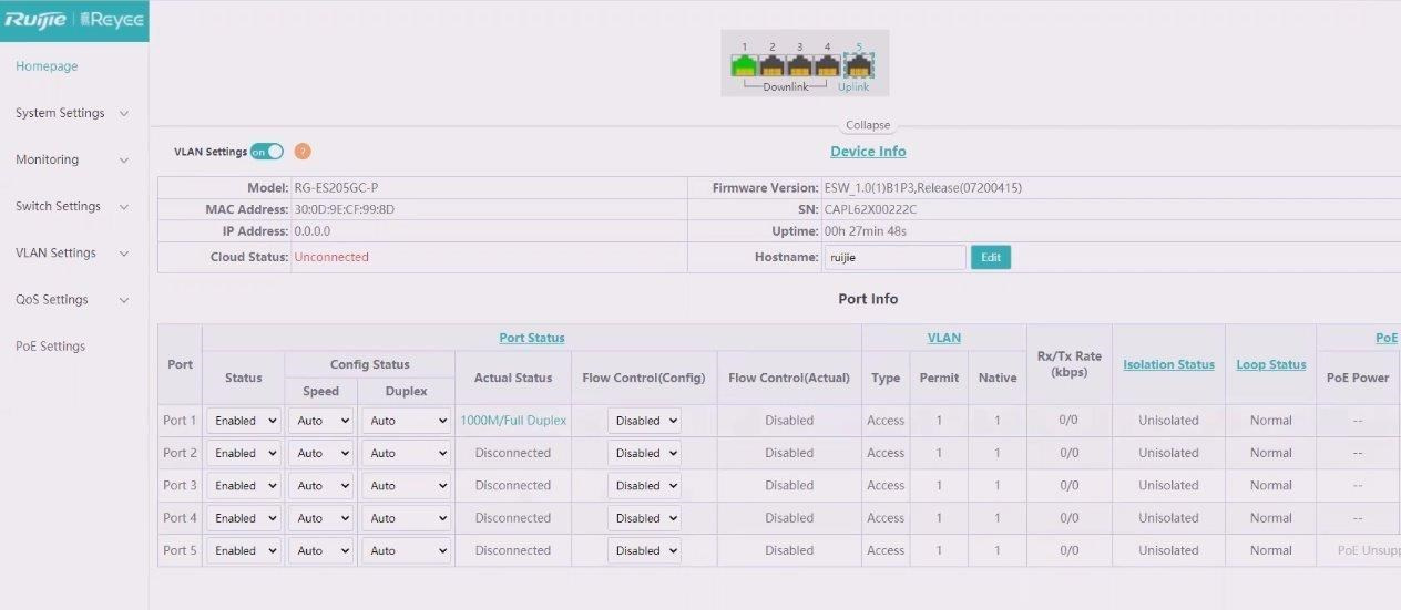 Reyee RG-ES206GC-P Smart mananged PoE switch, 4x PoE