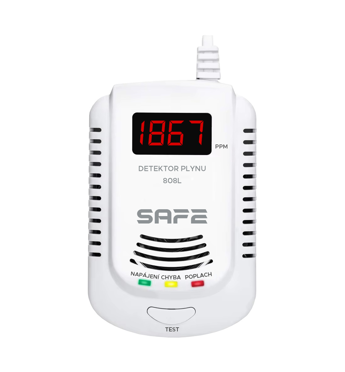 Hlásič plynu SAFE – 808L se ideálně hodí pro detekci úniku plynu ze všech domácích plynových spotřebičů a plynových kotlů. Detekuje všechny hořlavé plyny běžně se vyskytující v domácnostech.
