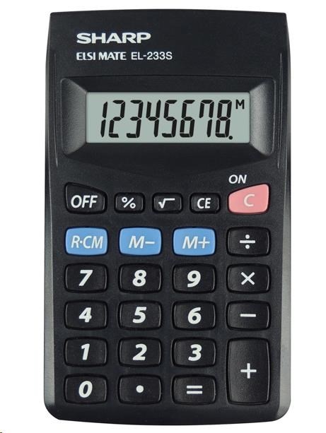 Pocket calculator with compact design, large LCD display(8 digits), square root and percentage calculations..