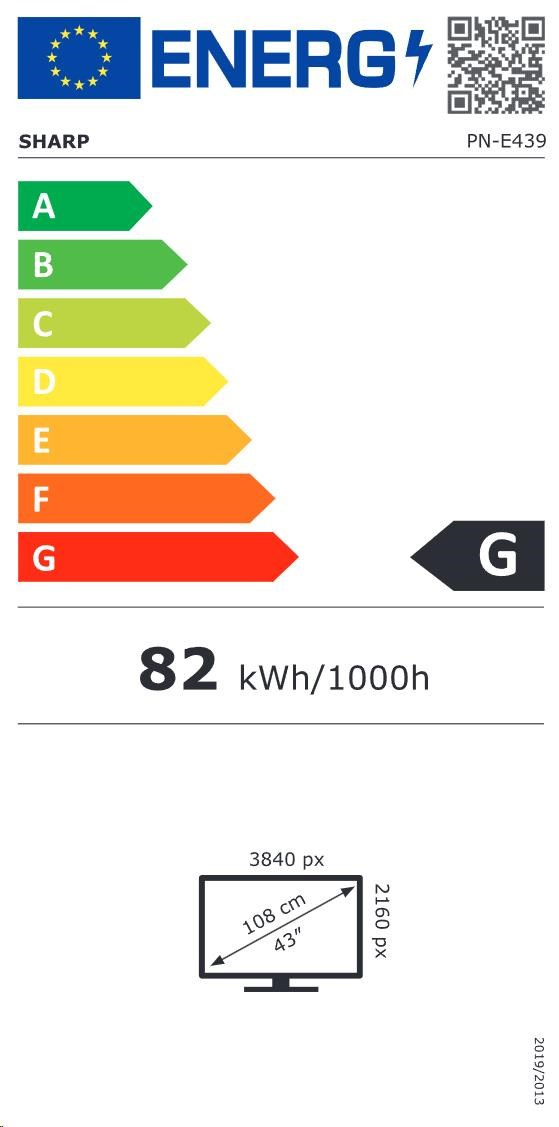 | Energy Efficiency | LED backlight; Spotřeba energie: 82 kWh/1000 provozních hodin; Třída energetické účinnosti: G |