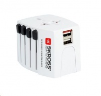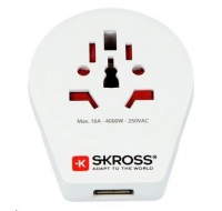 SKROSS cestovní adaptér PRO World & USB, 6,3A max., uzemněný, vč. univerzální USB nabíječky, pro celý světPlně uzemněný 3- pólový adaptér, včetně adaptéru pro připojení ostatních přívodních šňůr s integrovanou USB nabíječkou (PA30USB), propojí spotřebiče se všemi 2- pólovými i 3- pólovými zásuvkami třídy I a II po celém světě, typy výsuvných vidlic a zásuvek: Velká Británie, Švýcarsko, Itálie, Austrálie/Čína, USA, bezpečnostní tlačítko pro zajištění polohy a pro vytažení ze zásuvky, pojistka T10A snadno vyměnitelná uživatelem.