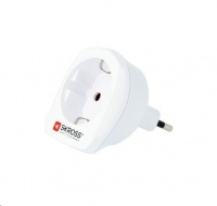 SKROSS cestovní adaptér Europe pro cizince v ČR, typ E/FUniverzální adaptér s uzemněním, max. 16A, pro cizince navštěvující ČR, SR nebo pro připojení zahraničního výrobku s jinou vidlicí přívodní šňůry v českých zásuvkách, všechny spotřebiče s 2- a 3-kolíkovou šňůrou, nová bezpečnější konstrukce, rozšířená zadní část pro bezpečné vytažení adaptéru ze zásuvky.